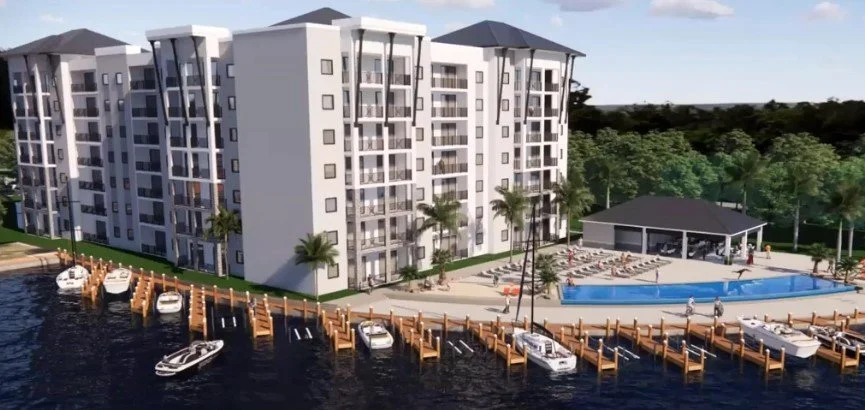 The long-planned Lake Shadroe Resort and Marina has requested construction permits for its planned Air B&B on Burnt Store Rd. next to the city Boat Ramp. The resort will feature a 7-story building with 48 units facing the water, a swimming pool, docks, tiki-bar and a restaurant. A building with office and retail units will face Burnt Store Rd. Whitestone Development, builder of many rental homes in the area and the Hibiscus Gardens multi-family project east of Target on Pine Island Rd., is behind this project. Construction is expected to start in 2024 with completion projected for 2025.