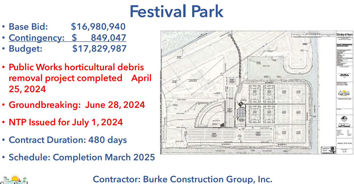 Festival Park - Groundbreaking June 28, 2024. Estimated Completion March 2025.