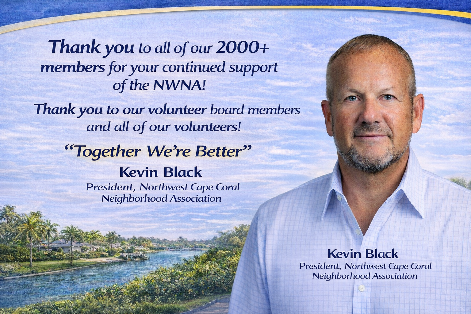 continue to grow the NWNA and make NW Cape Coral a great place to live!