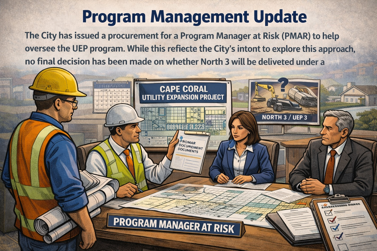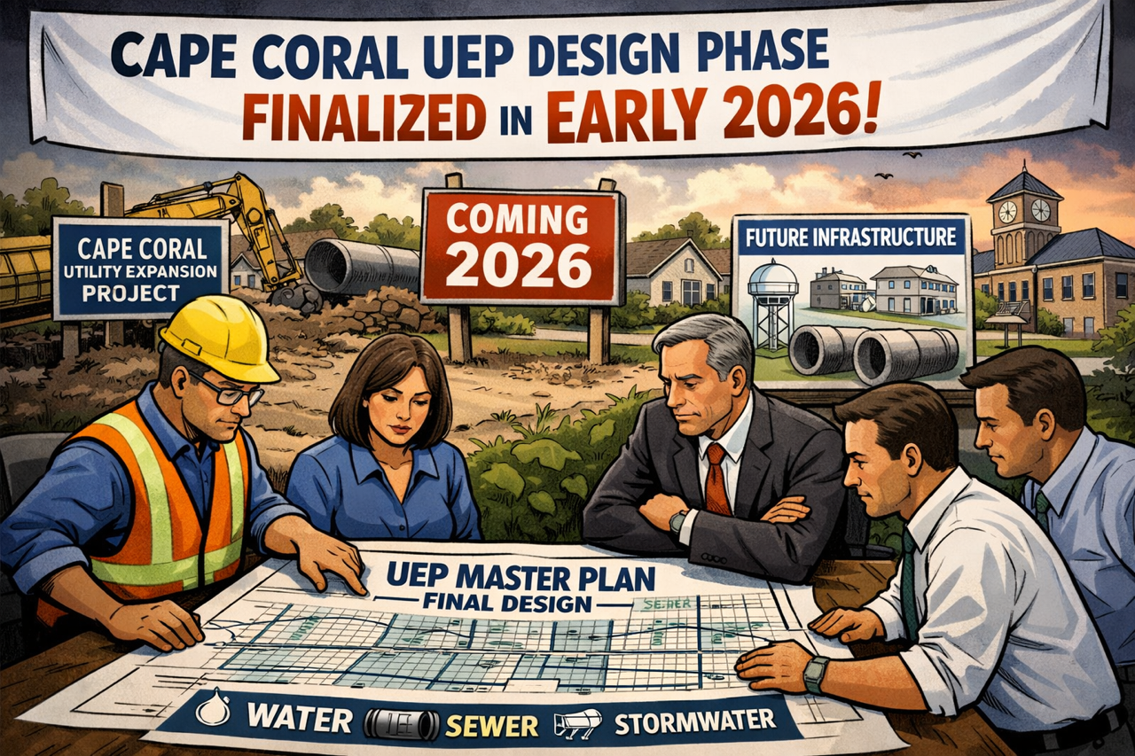 For the most current and official information from the City of Cape Coral, residents should refer to City of Cape Coral – Utilities Expansion Project (UEP):